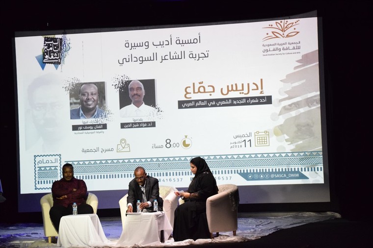 استعرضت أمسية ”أديب وسيرة“ التي أقيمت بجمعية الثقافة والفنون في الدمام مساء الخميس، تجربة الشاعر السوداني إدريس جماع الذي يعد من الأسماء البارزة في سماء الشعر السوداني والعربي، وله العديد من القصائد المشهورة التي تغنى ببعضها مطربون من السودان والوطن العربي، كما أدرج بعضها في مناهج التربية والتعليم المتعلقة بتدريس آداب اللغة العربية بالسودان.