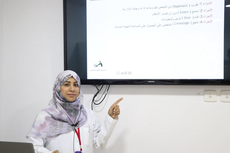 ونبهت في دورة ”المساعدة النفسية الأولية“ التي قدمتها في أحد المراكز الخاصة من تأخر التدخل العلاجي، مضيفة أن العلاج المبكر يخفف من تكلفته.