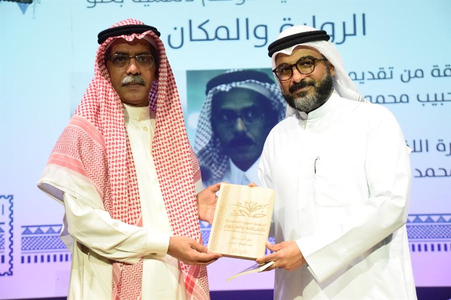 وفي ختام الأمسية كرم المشرف على البرنامج الثقافي بالمنطقة الشرقية د. طارق الخواجي الروائي والكاتب حبيب محمود إضافة لتكريمة لمدير الأمسية.