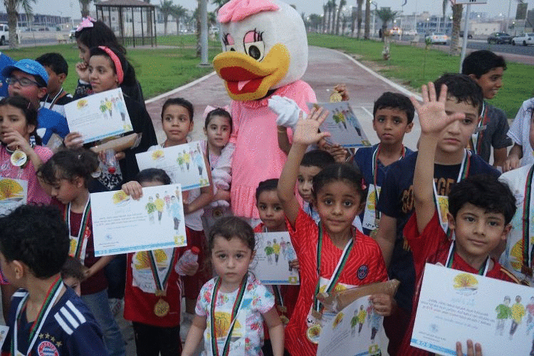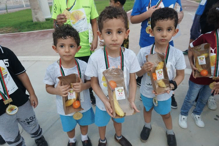 وكرّم الفريق الأطفال الشماركين في المشي لمسافة 2 كلم لمدة نصف ساعة بالميداليات والجوائر العينية، وذلك تحفيزا وتشجيعا على الاستمرار في مزاولة المشي.