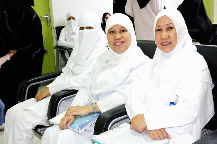 يذكر بأن فريق العمل الطبي تكون من «أنوار الخنيزي ماجستير تمريض أمراض النساء والولادة ونائبة مدير خدمات التمريض، وفاطمة الأحمد وكوثر العسيف من قسم التعليم والتدريب التمريضي، وأنفال العسيف مدربة أكلينكية، وزينب المزين فنية معلومات صحية، وأمل السيهاتي رئيسة تمريض العيادات الخارجية، والممرضة أريج اليوسف مثقفة صحية».