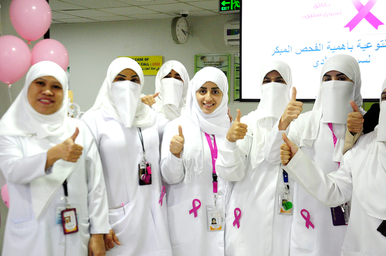 وأتى حديثها في فعالية «لك يا غالية، دقائق تسوى سنين» والتي تم إقامتها من قبل إدارة التمريض بدعم من إدارة القطيف المركزي في العيادات الخارجية للمستشفى في قسم انتظار النساء وذلك احتفاء بشهر أكتوبر الشهر الوردي الذي يتمثل في التوعية بسرطان الثدي.