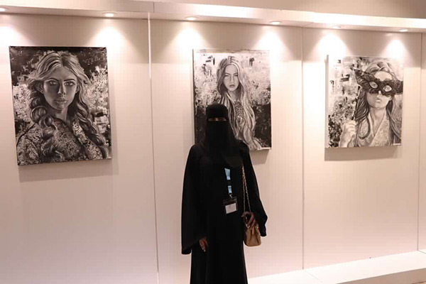 فيما شاركت خديجة الخويلدي بلوحتين من البورتريه ”re action“ لصورة فنانين أجنبيين، وليس من البورتريه الناعم للصورة الصمّاء.