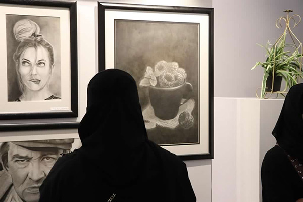 وغلب على لوحات المشاركات في المعرض رسم البورتريه، والطبيعة الصامتة، باستخدام الرصاص والفحم وألوان الزيت والإكلريك.