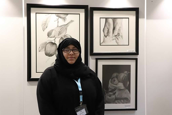 ولفتت إلى أنها المشاركة الخامسة لابنتها الأكبر فاطمة والتي رسمت فيها صورة لروح صديقتها المتوفاة، بينما رسمت أختها طائر البوم وهو يحمل بين أسنانه خيط وعليه صورة قلب".