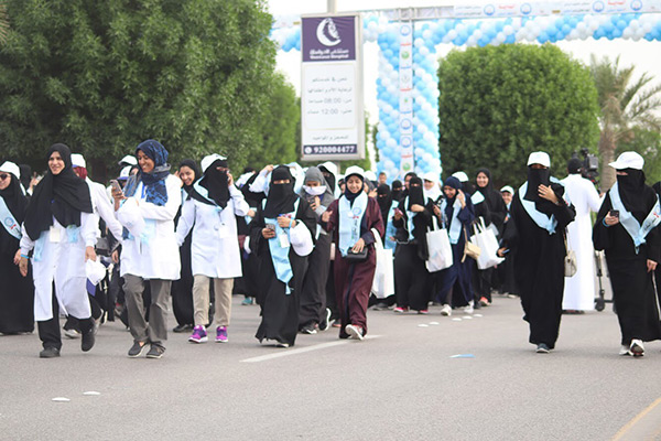 الماراثون الذي أقيم تحت رعاية محافظ القطيف خالد الصفيان يأتي دعماً لحملة التوعية حول مخاطر مرض السكري.