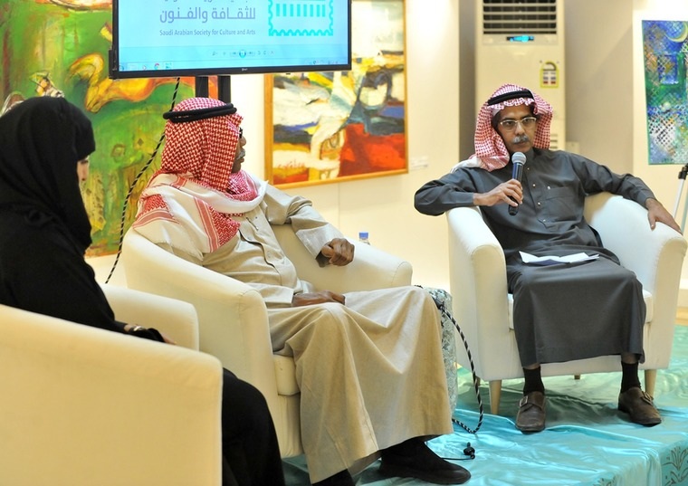 وفي الندوة الثانية التي حملت عنوان ”تجربة السليمان التشكيلية المحلية والدولية“ وأدارها الكاتب حبيب محمود، استعرض الدكتور إبراهيم بن عمر والدكتورة إيمان الجبرين ما يتمتع به الفنان السليمان من قدرة هائلة على احتواء المشاكل التي تحصل في بعض الاحيان بين الفنانين المشاركين في بعض المعارض التشكيلية.