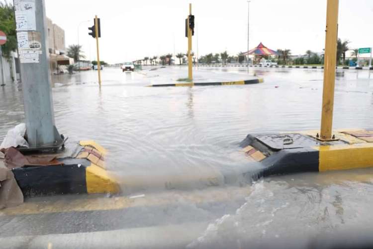 سحب رعدية تغرق شوارع القطيف بمياه الأمطار