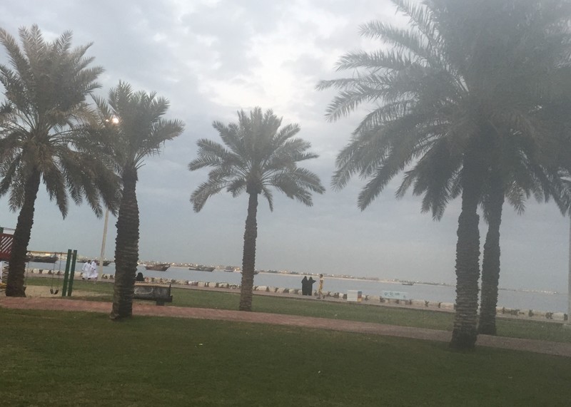 بالرغم من هطول الأمطار ألا أن الواجهة البحرية في محافظة القطيف شهدت توافد المتنزهين عليها مساء اليوم، للاستمتاع بالاجواء الخريفية والسماء الملبدة بالغيوم.