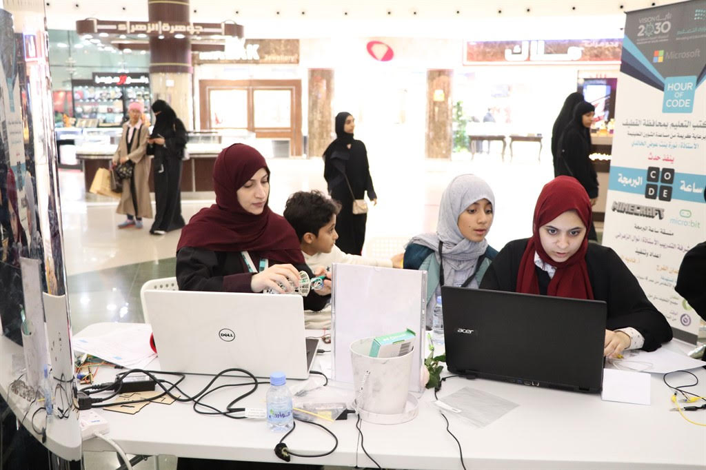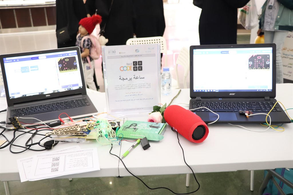 وجاءت الفعالية تحت رعاية مساعدة الشؤون التعليمية نوره الخالدي، متضمنة عدد من الاركان من ضمنها ركن الإبداع الرقمي ثم تنظيم حملة ساعة البرمجة.