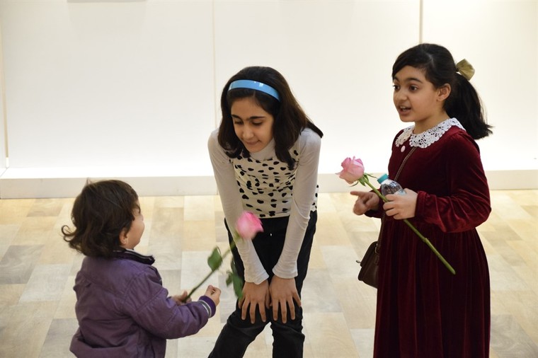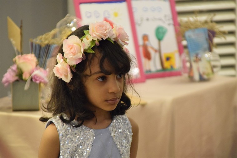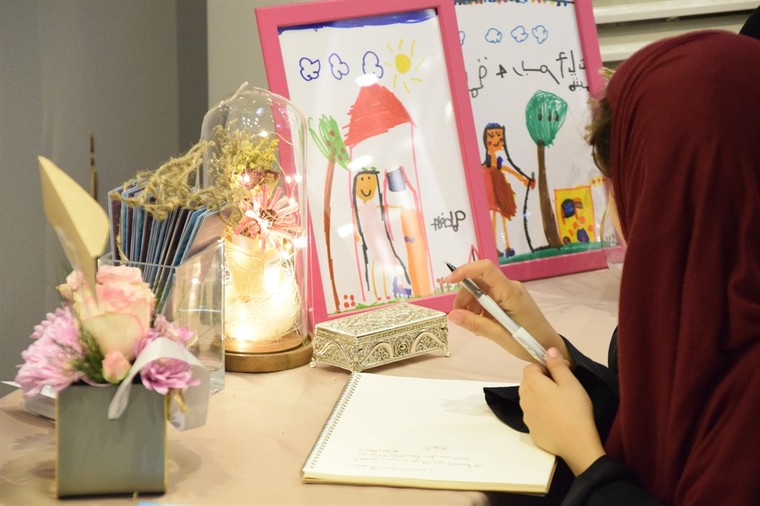 وكانت الطفلة آل يوسف تختبئ في المعرض من آلات التصوير، إلا انها انطلقت لتتناغم مع الموسيقى في القاعة، لافتة إلى حبّها الخاص ”لرقصة البالية، وترديد الأناشيد“.