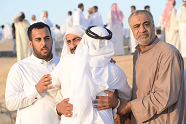 واقيمت الصلاة على الجثمان بإمامة امام الامام مسجد الحسين السيد علي الناصر وشارك في العزاء عدد كبير من اهل المنطقة الشرقية ودول الخليج حيث رفعت صور الفقيد طيلة المسيرة الذي امتدت كيلوين.
