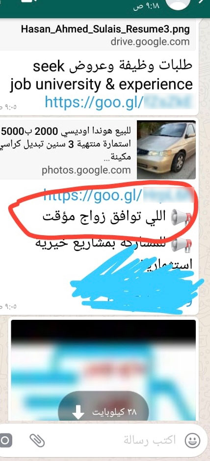 واستغرب متداولو الاعلانات المشبوهة تدعوا الفتيات الى الزواج الغير رسمي جرأة إرساله عبر قنوات التواصل الاجتماعية بخطوطه العريضة ويدعو فيه الراغبات في الزواج الغير رسمي التواصل على الرقم المدون في الإعلان في سابقةٍ لم يعهدها المجتمع القطيفي قبلا.ً