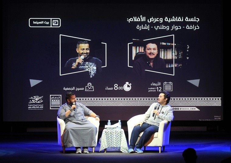 ضمن برنامج جمعية الثقافة والفنون بالدمام استضاف ”بيت السينما“ أمس الأربعاء على مسرح الجمعية عرض أفلام ”خرافة“ و”حوار وطني“ وإشارة ”للمخرج فيصل الحربي، والذي يعد من فئة المخرجين الشباب وحاصل على جوائز عديدة بأفلامه القصيرة، وبعد العرض المرئي بدأت“ الندوة النقاشية" والتي أدارها الفنان ابراهيم الحجاج وسط حضور من متابعين برامج بيت السينما.
