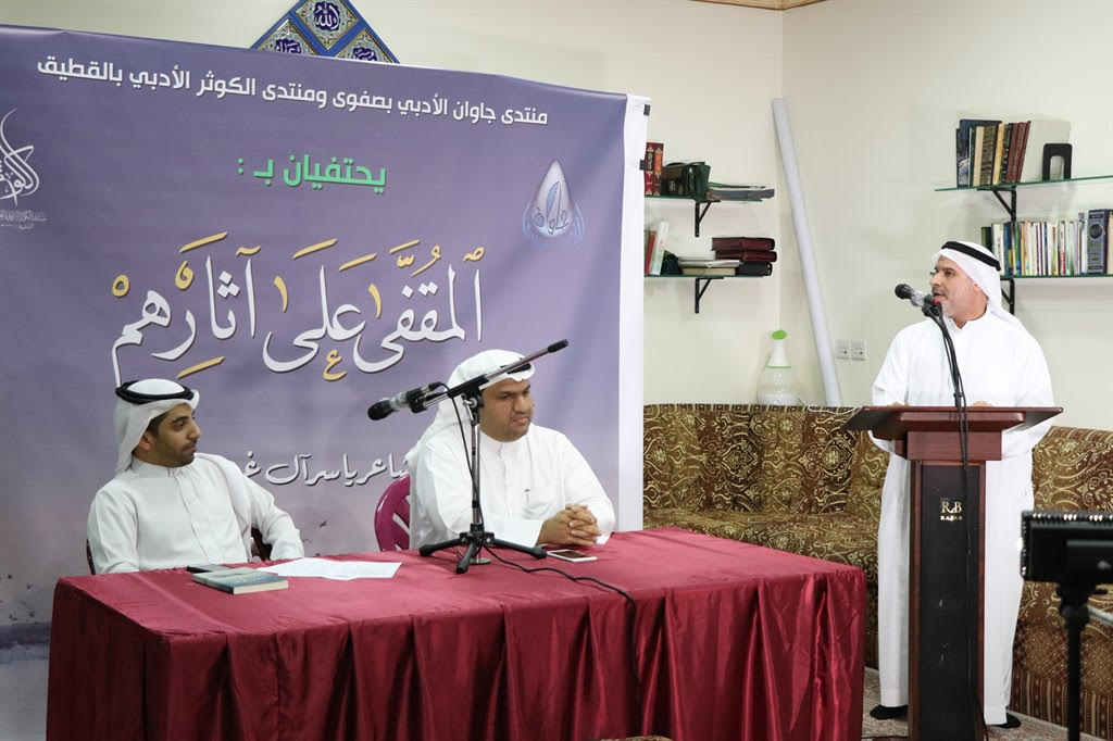 دشن الشاعر ياسر آل غريب حفل توقيع ديوانه الخامس بعنوان '' المقفى على آثارهم '' في جامع الرسول الأعظم بصفوى مساء الإثنين بحضور الناقد الأدبي علي مكي الشيخ وثله من المثقفين والمبدعين .