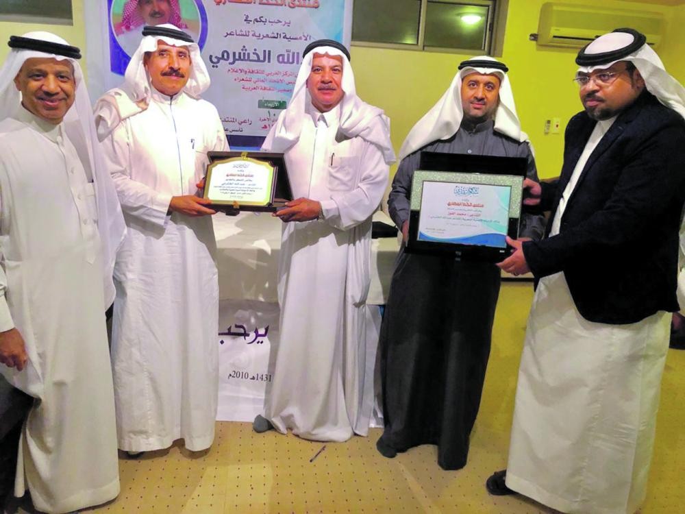وتحدث باختصار عن تجربته الشعرية حيث أصدر الشاعر الخشرمي ست مجموعات شعرية.