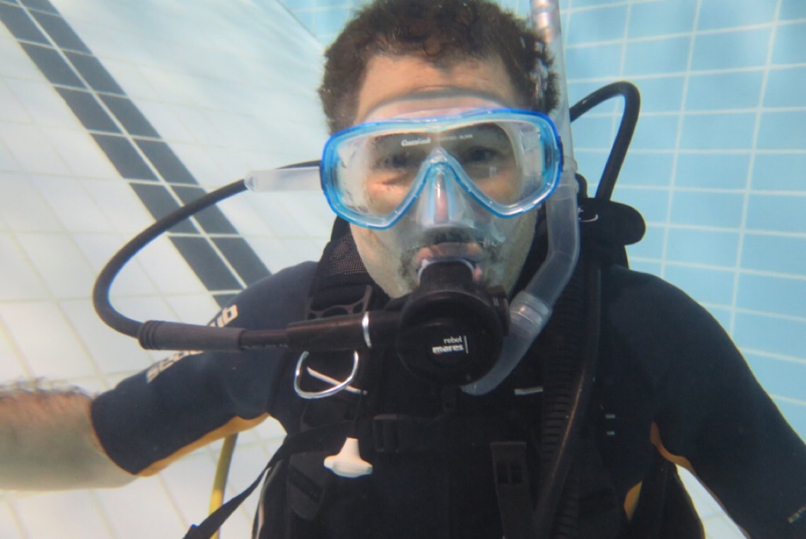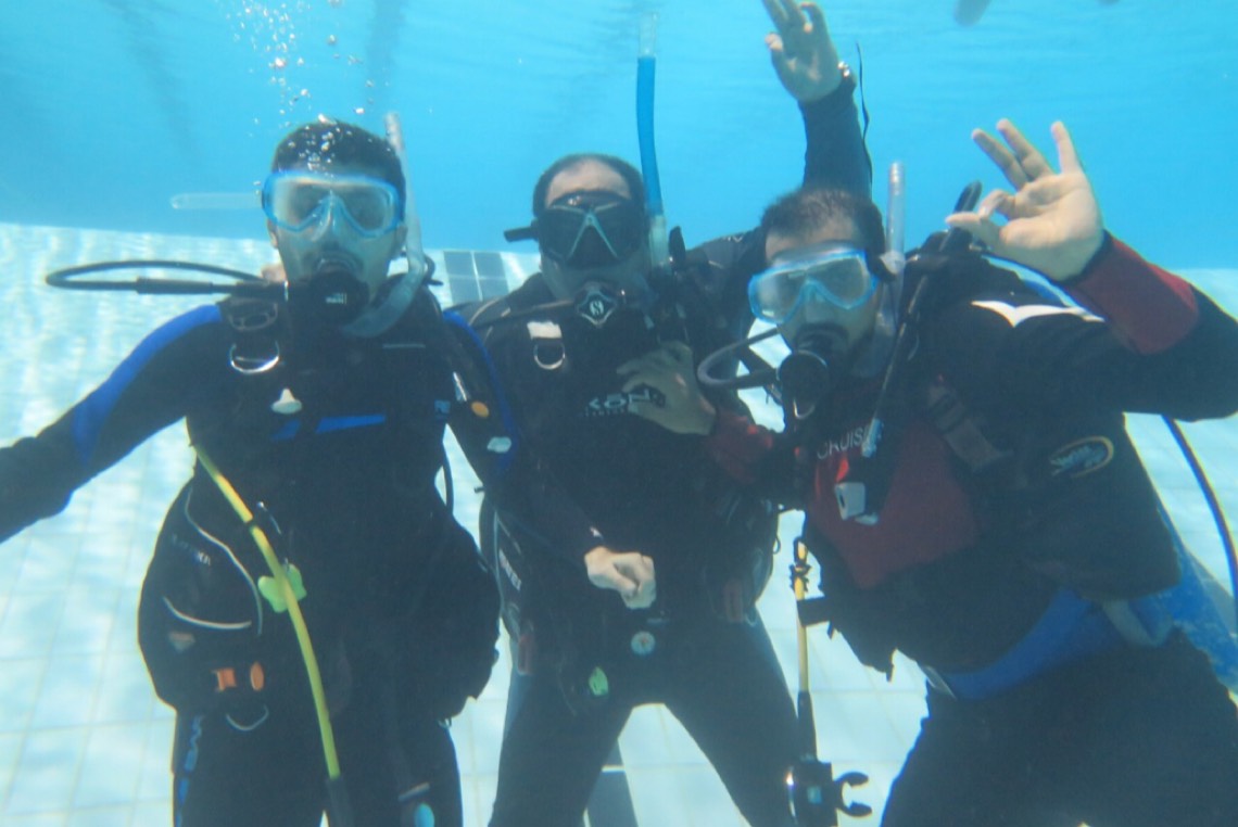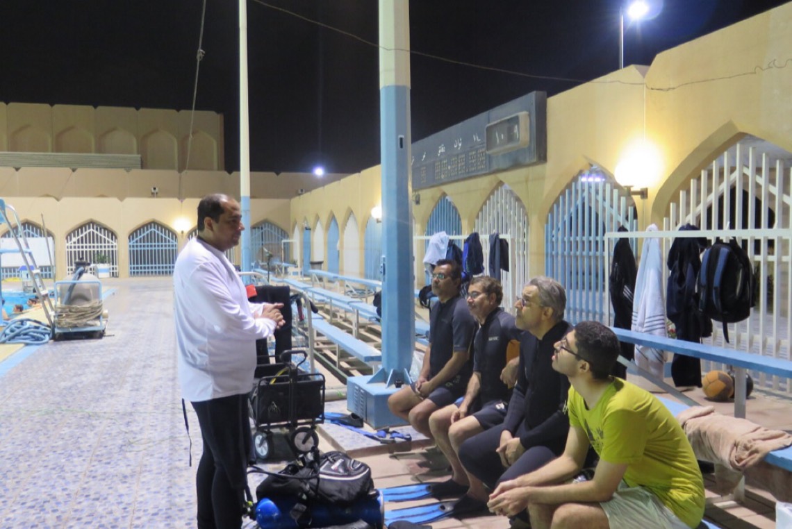 وفي اليوم الثاني أقيم البرنامج العملي في مسبح نادي الصفا الرياضي طبقوا خلاله بعض المهارات مثل تنظيف النظارة وقراءة مقياس الضغط وطريقة التنفس كما التقطت الصور في أعماق المسبح الذي استمر نصف ساعة في كل غوصة.