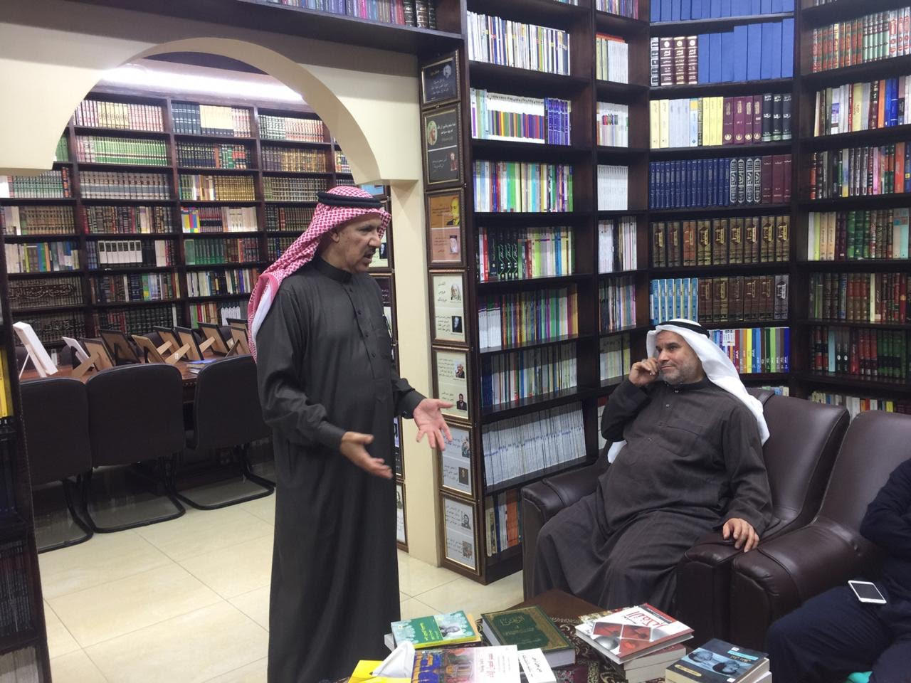 وتجول أعضاء المنتدى في قاعات المكتبة المسماة برموز الفلسفة، واستعرض لهم نماذج كثيرة من الملفات التي يعدها من قصاصات الصحف والمجلات المحلية والعربية التي تغطي أخبار الثقافة.