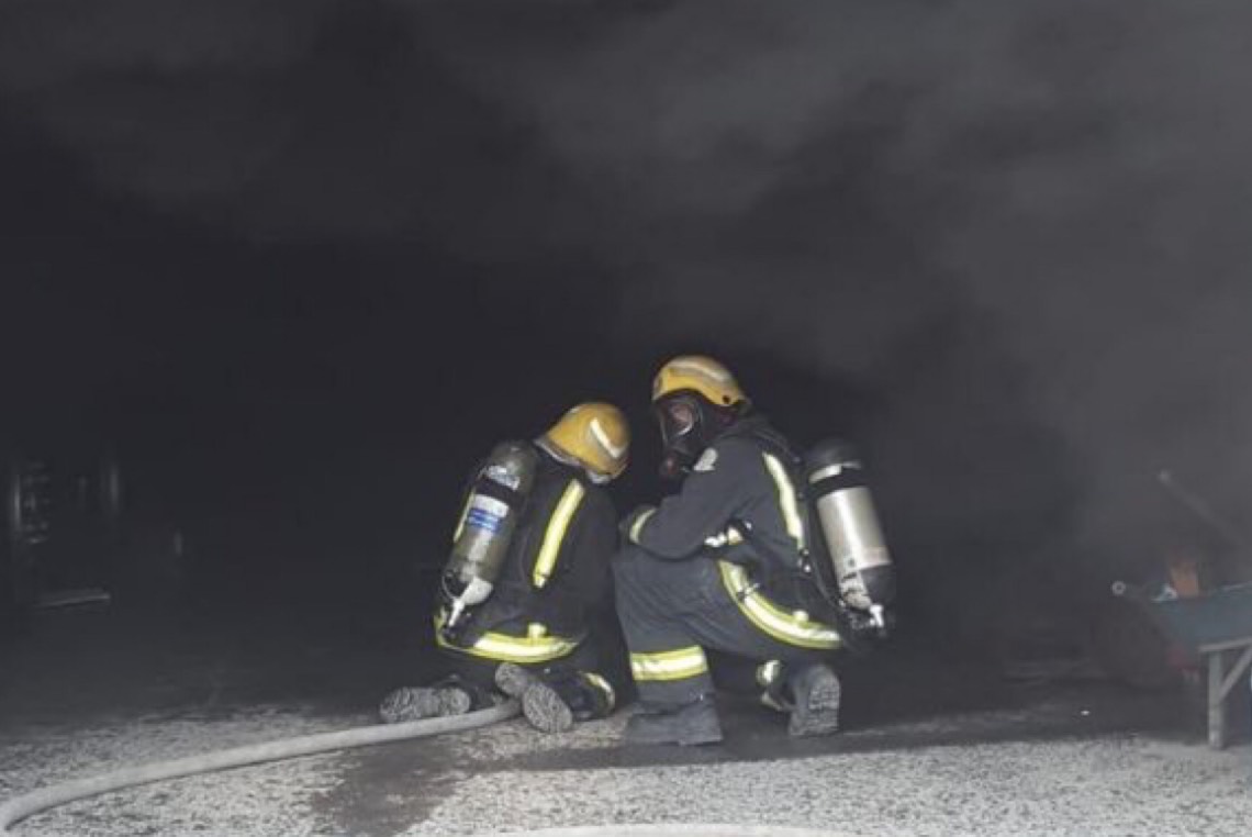 بالصور.. مدني القطيف يخمد حريقاً إندلع في ورشة سيارات بتركية الصناعية