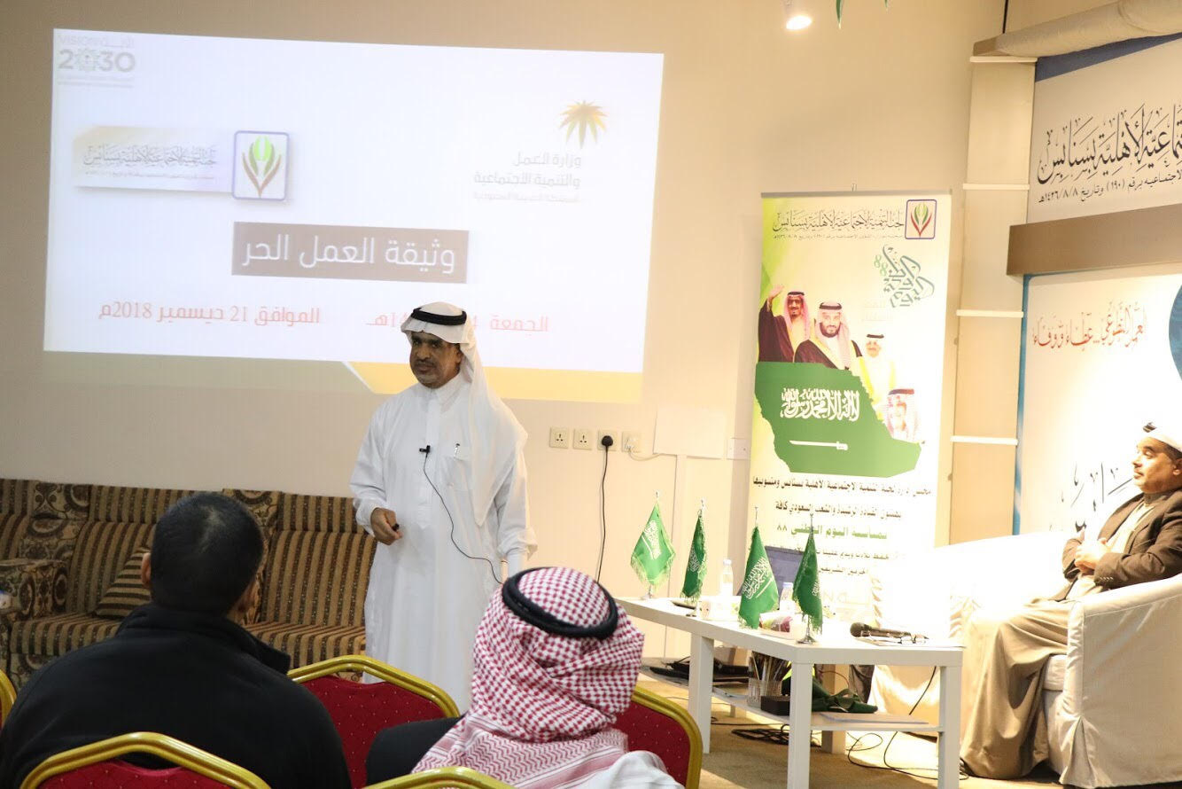 وتابع خلال حديثه في محاضرة ألقاها مساء الأربعاء بلجنة التنمية الاجتماعية الأهلية بسنابس من ضمن الأنظمه الكثيره في السنوات الاخيره أنشئ برنامج هدف نظاما يختص بالعمل الحر تحت شروط وانضباطات يخول العمل بها لأصحاب الأعمال الحره.
