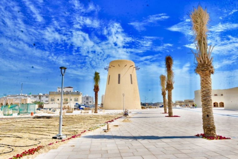 وتابع: ”يتضمن المركز مكتبة وقاعة مؤتمرات، ومعارض، وتبلغ مساحة المركز الحضاري 5323 متر مربع، أما الأبراج فهي من أبرز المعالم في المشروع، وهي خمسة أبراج وهو بيت مصمم باستخدام مواد أصلية وبأسس تقليدية بمساحة 1200 متر مربع، يتوسطه فناء داخلي، تميزه الجدران السميكة والنوافذ الصغيرة الضيقة يحيط بالفناء ممرا مظللا بالعوارض الخشبية، ومحاطا بالأقواس من الجانبين، أما السوق الشعبي، فهو يمتد على طول الطريق المؤدي إلى الساحة المركزية“.