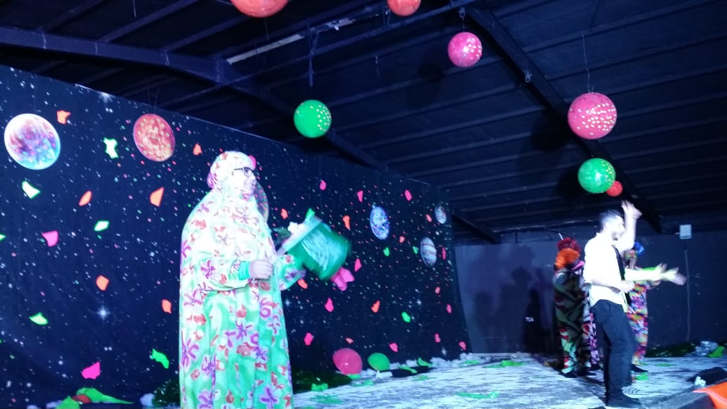 ويستوحى عنوان المسرحية من اسم كائن فضائي خيالي يتخلل احداث العرض للكاتب المؤلف علي المصطفى الذي يكتب لمسرح الطفل منذ 50 عامًا وهو من الرواد في الخليج، وقد قضى المخرج المسرحي ماهر الغانم ايضًا عمرًا في فضاء مسرح الطفل منذ الثمانينات الميلادية منذ كان في مدرسة الحسين بن علي الابتدائية بالقطيف.