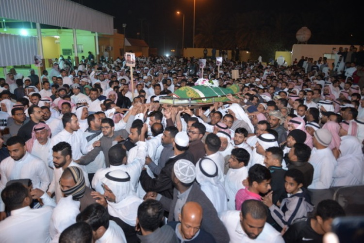 شيعت أمس السبت جموع غفيرة شهيد الواجب والوطن وكيل رقيب إبراهيم حاجي بوحيمد الذي استشهد يوم أمس الجمعة بالحد الجنوبي، وذلك في مقبرة الحسنية بالبطالية في محافظة الأحساء.