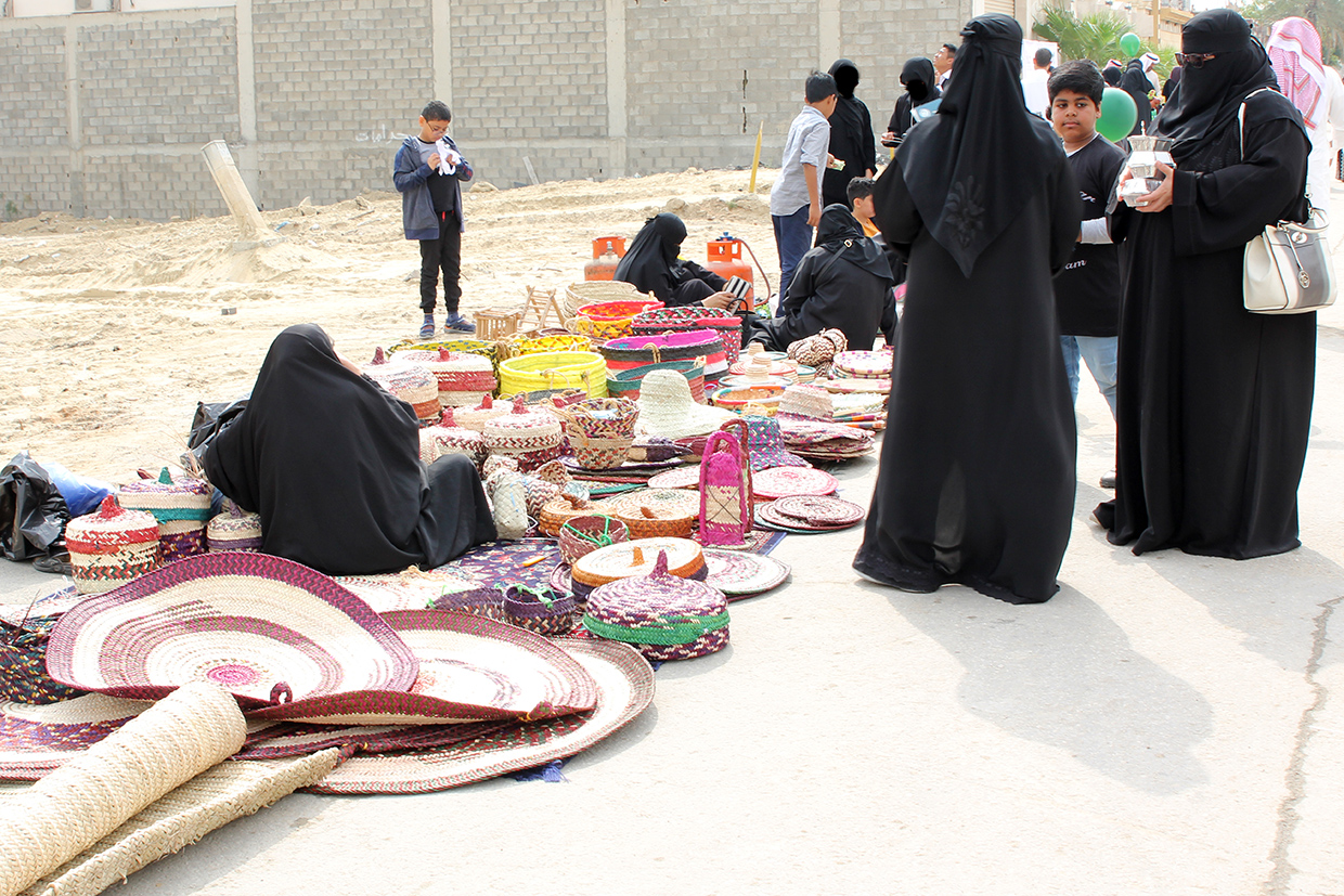 وفي مشهد فريد من نوعه التقت صحيفة جهينة الإخبارية بالحاجة أم كاظم والتي كانت تأخد زاوية في فعالية التشجير بمنطقة الشاطئ بالقطيف وتعمل على سف الخوصيات بيداها وتجاورها إبنتها في ركن أخر تعمل فيه على صناعة خبز التاوه.