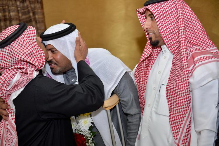 وكان في استقبال الوفد لدى وصولهم منزل والد المصاب هشام عبدالله الدوخي ببلدة الجشة في محافظة الأحساء، والذي اطمأنّ على حالته الصحية.