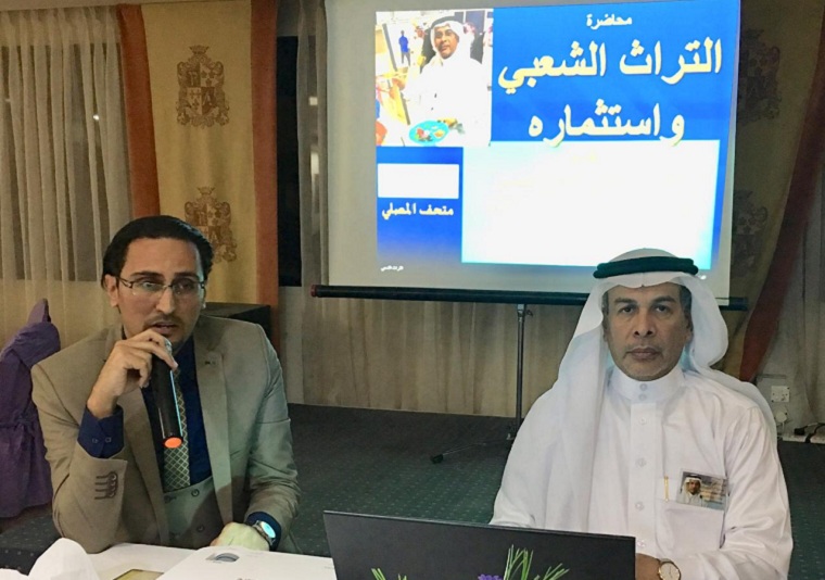 وضمن فعاليات الملتقى القى الفنان المصلي محاضرة حول التراث الشعبي والتشابه السعودي الأردني على هذا الصعيد.