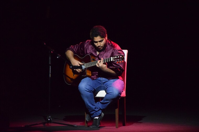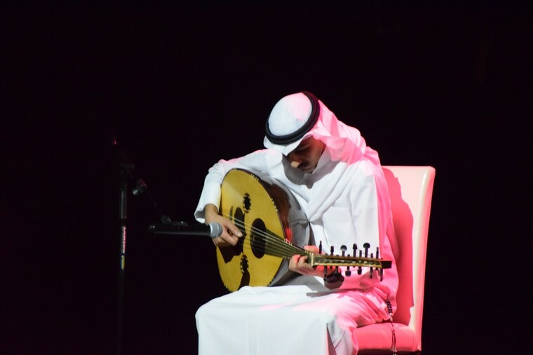 وعرض في الأمسية مشهد مسرحي قدمه الممثل علي عيد من سيناريو الضيف المكرم واخراج عقيل خميس، وقدما العازفين علي عيد وعثمان ثامر.