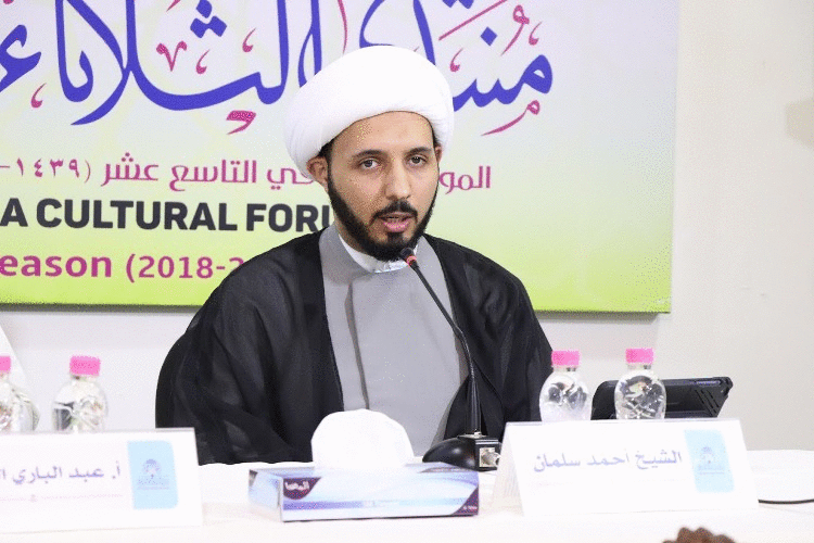 وقال الشيخ أحمد سلمان ”على المثقف أن يكون عنصرا مساعدا للفقيه في إيصال ووصف الواقع لمعرفة احتياجات المكلف“.