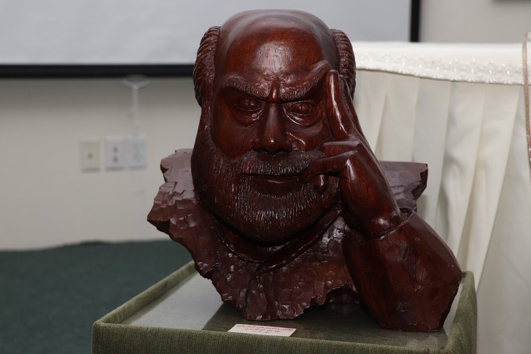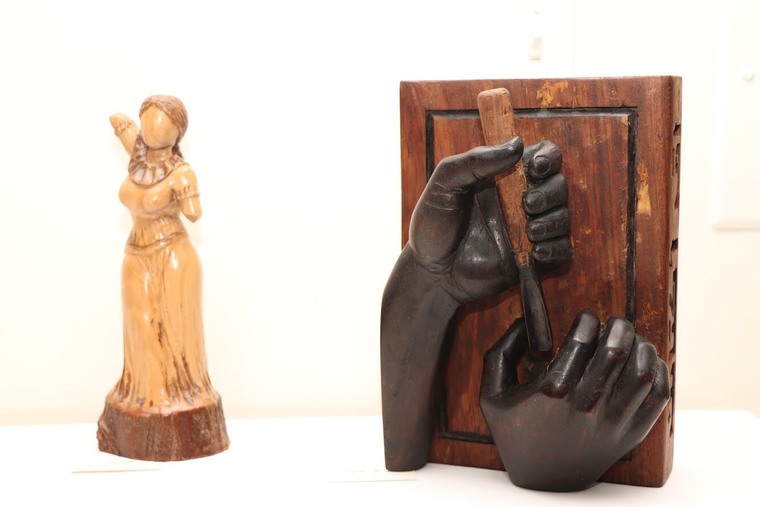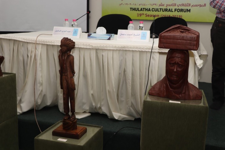 جذبت التحف الفنية التي قام بها النحات هاشم العلوي جمع الحضور في منتدى «الثلاثاء الثقافي» حيث امتاز المكان بعبق خشب الكافور واللوز المحلي.