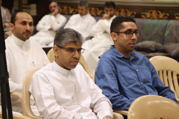 وقدم الحفل الدكتور سلمان عباس، تلاها تلاوة عطرة للقرآن الكريم للقارئ حسن البراك، ومشاركة أربعة من الشعراء ”حبيب المعاتيق في قصيدة“ إيقاع اللحظة ”، وسمير المسلّم بقصيدة“ رعشة تنحني ”، وسيد حسين عبدالعال بقصيدة“ خلف حروف الوحي ”، ووقفات ولائية للشاعر عبدالله القرمزي من البحرين“.