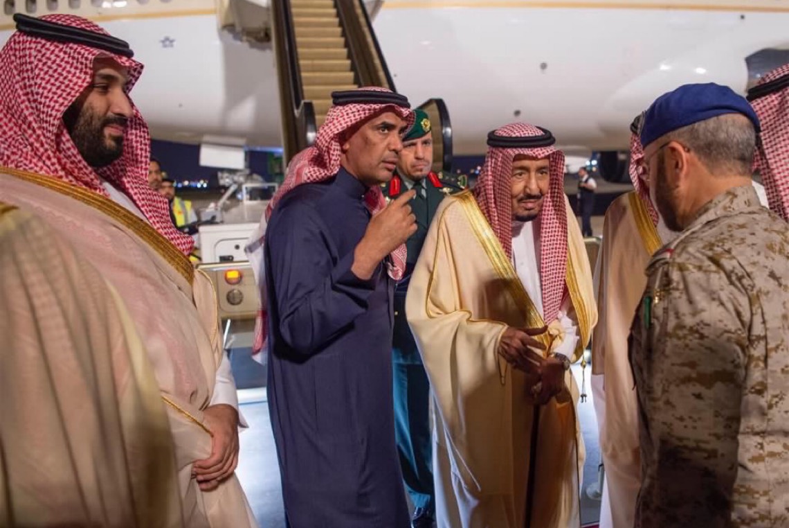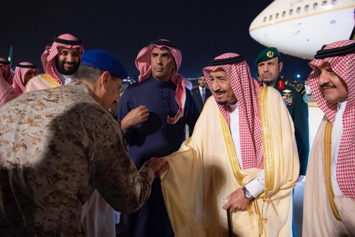 وكان في استقبال خادم الحرمين الشريفين عند سلم الطائرة بمطار قاعدة الملك عبدالعزيز الجوية في الظهران، الأمير سعود بن نايف بن عبدالعزيز أمير المنطقة الشرقية، والأمير محمد بن سلمان بن عبدالعزيز ولي العهد نائب رئيس مجلس الوزراء وزير الدفاع.