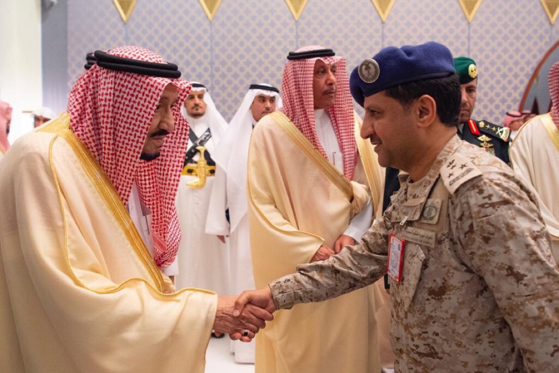 كما كان في استقبال الملك، الأمير تركي بن محمد بن فهد بن عبدالعزيز وزير الدولة عضو مجلس الوزراء، والأمير سلطان بن فهد بن سلمان بن عبدالعزيز، والأمير أحمد بن فهد بن سلمان بن عبدالعزيز نائب أمير المنطقة الشرقية، والأمير بدر بن عبدالله بن فرحان وزير الثقافة، والأمير فهد بن تركي بن فيصل بن تركي بن عبدالعزيز نائب أمير منطقة القصيم، والأمير محمد بن سعود بن نايف بن عبدالعزيز، والأمير عبدالله بن بندر بن عبدالعزيز وزير الحرس الوطني، والأمير خالد بن سلمان بن عبدالعزيز نائب وزير الدفاع، و رئيس هيئة الأركان العامة الفريق أول ركن فياض بن حامد الرويلي، والفريق ركن تركي بن بندر بن عبدالعزيز قائد القوات الجوية.