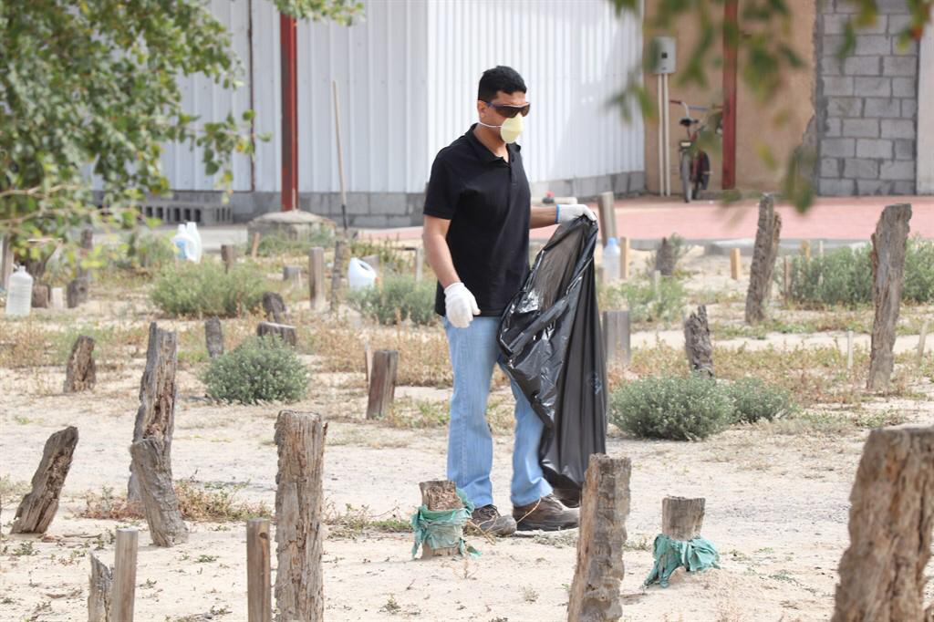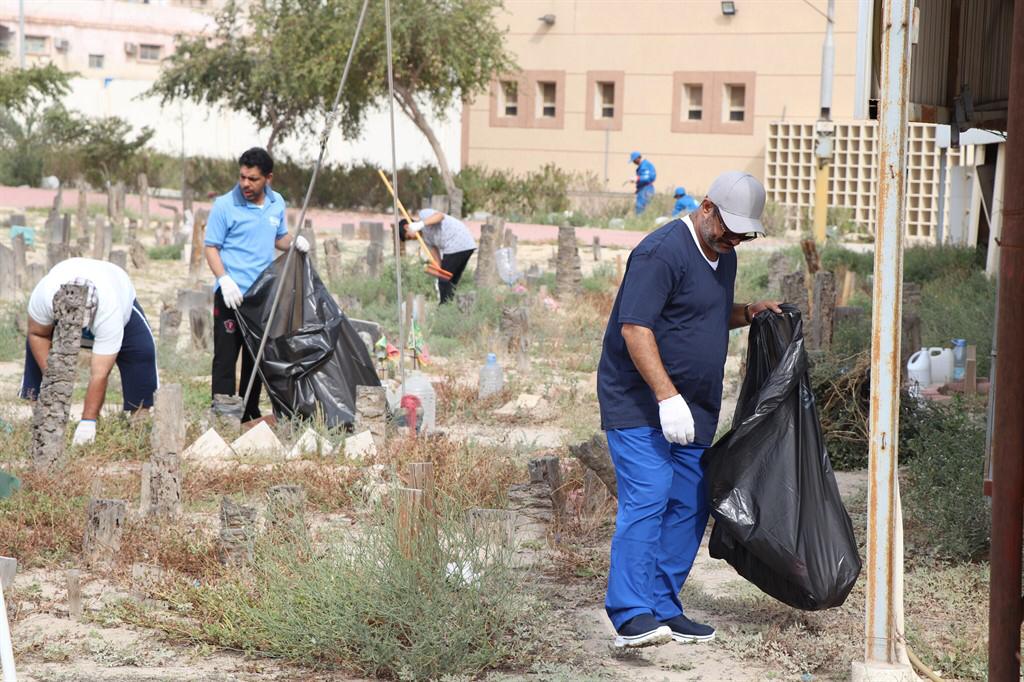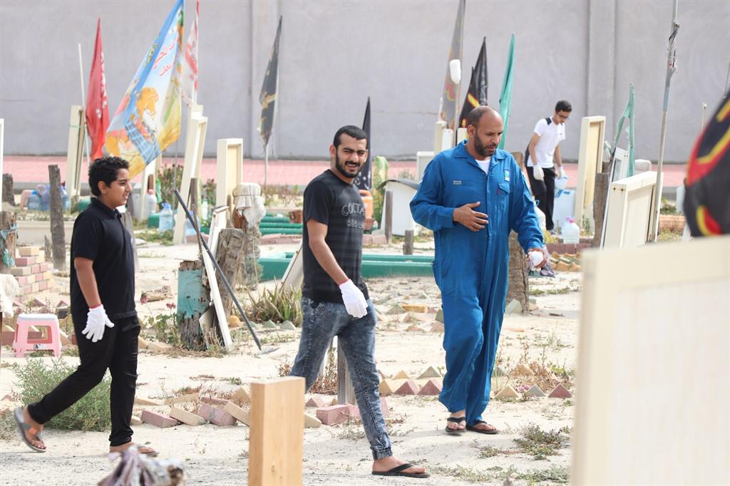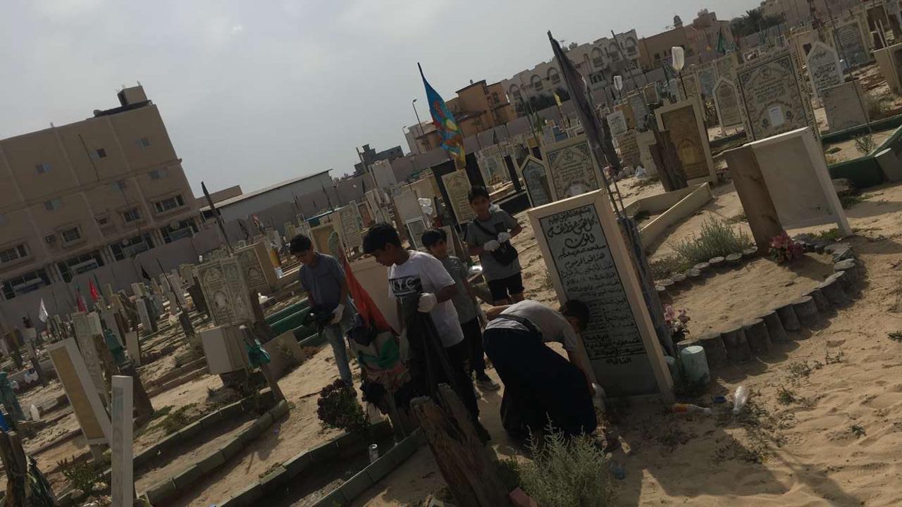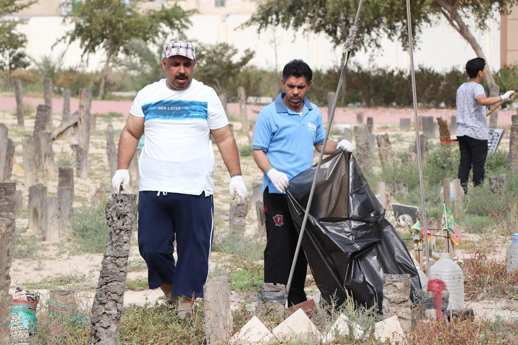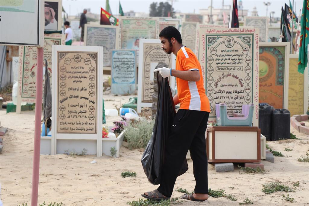 بالصور.. شابٌ يحفز 170 متطوعا لتنظيف مقبرة صفوى