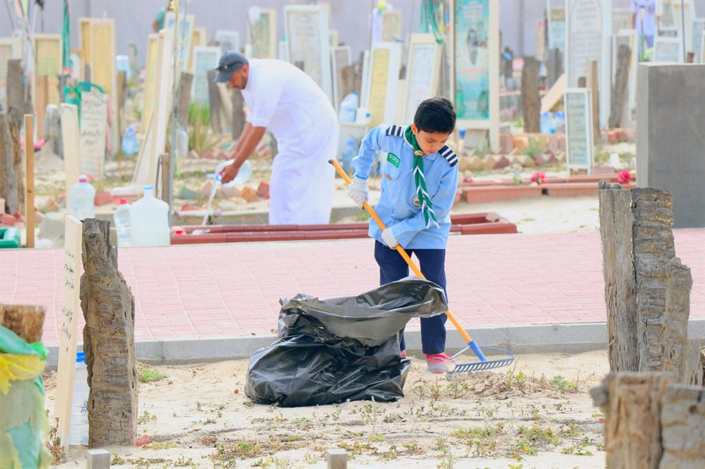 حفز الشاب عقيلي العقيلي 170 متطوعا من مختلف الأعمار أكبرهم سبعيني، لتنظيف مقبرة صفوى اليوم في الحملة التي نفذها بالتعاون مع بلدية صفوى ولجنة بيت الغربة التابعة لجمعية الصفا.