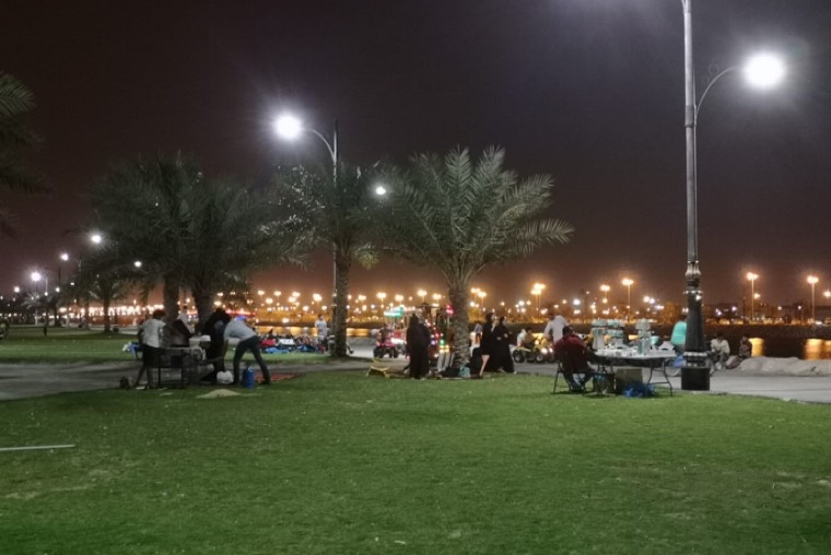ومن ذلك كورنيش المشاري الدي يزدحم في ليالي نهاية الاسبوع دائماً بمئات الأشخاص الذين يجدون فيه متنفس بعد اسبوع طويل من العمل والدراسة.