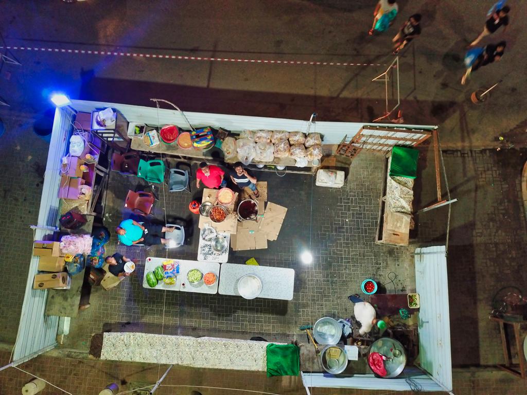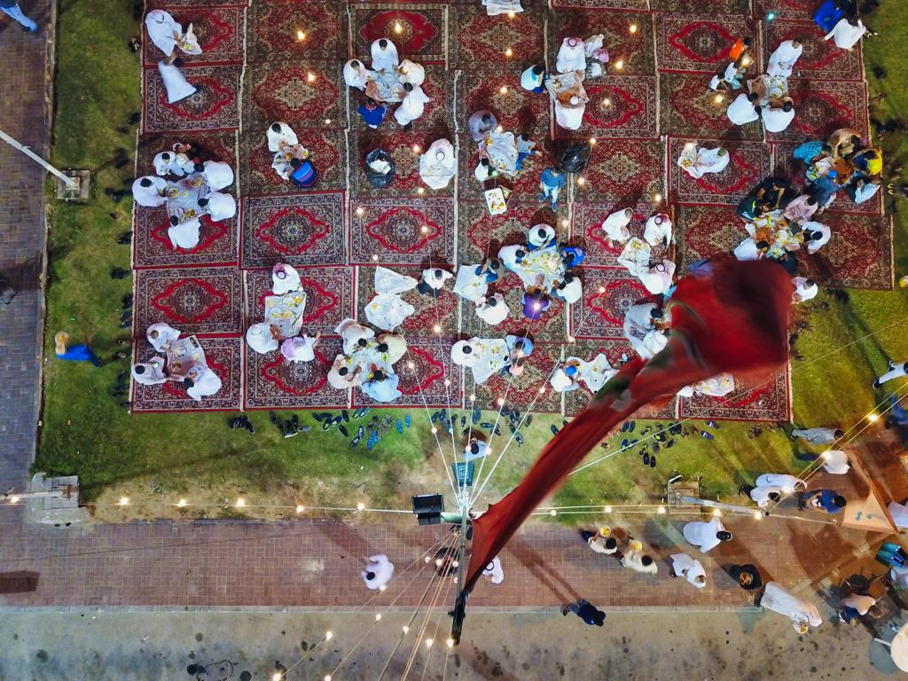 وأظهر التصوير مناظر مدهشة لحشود المحتفلين وطوابير عند المضائف التي تقدم أنواع الأطعمة والمرطبات.