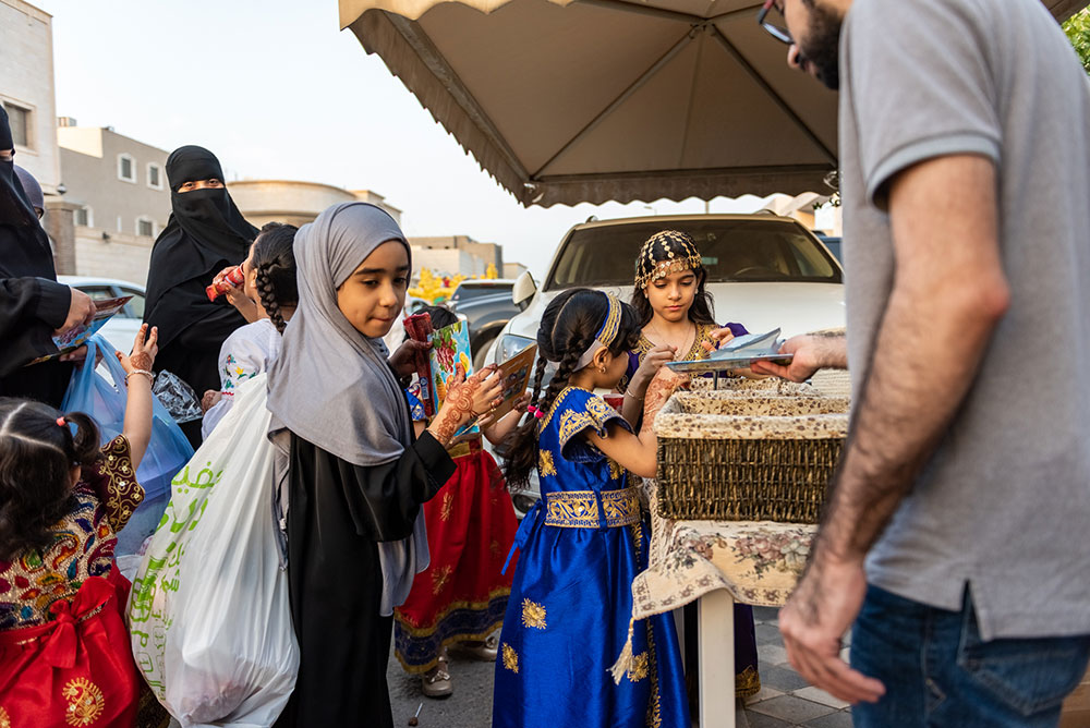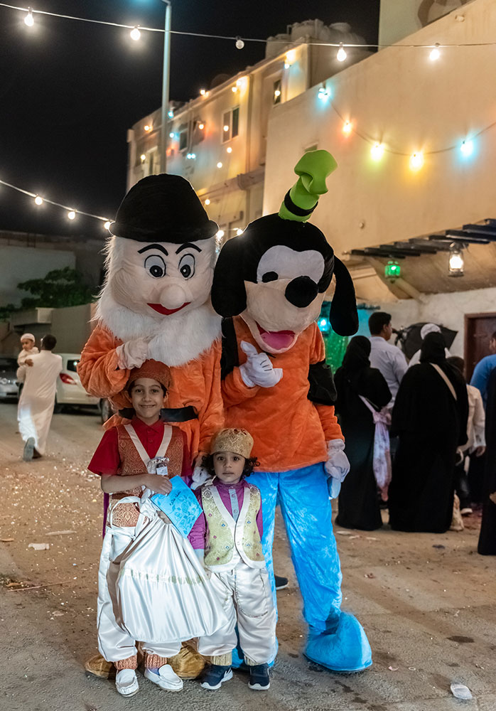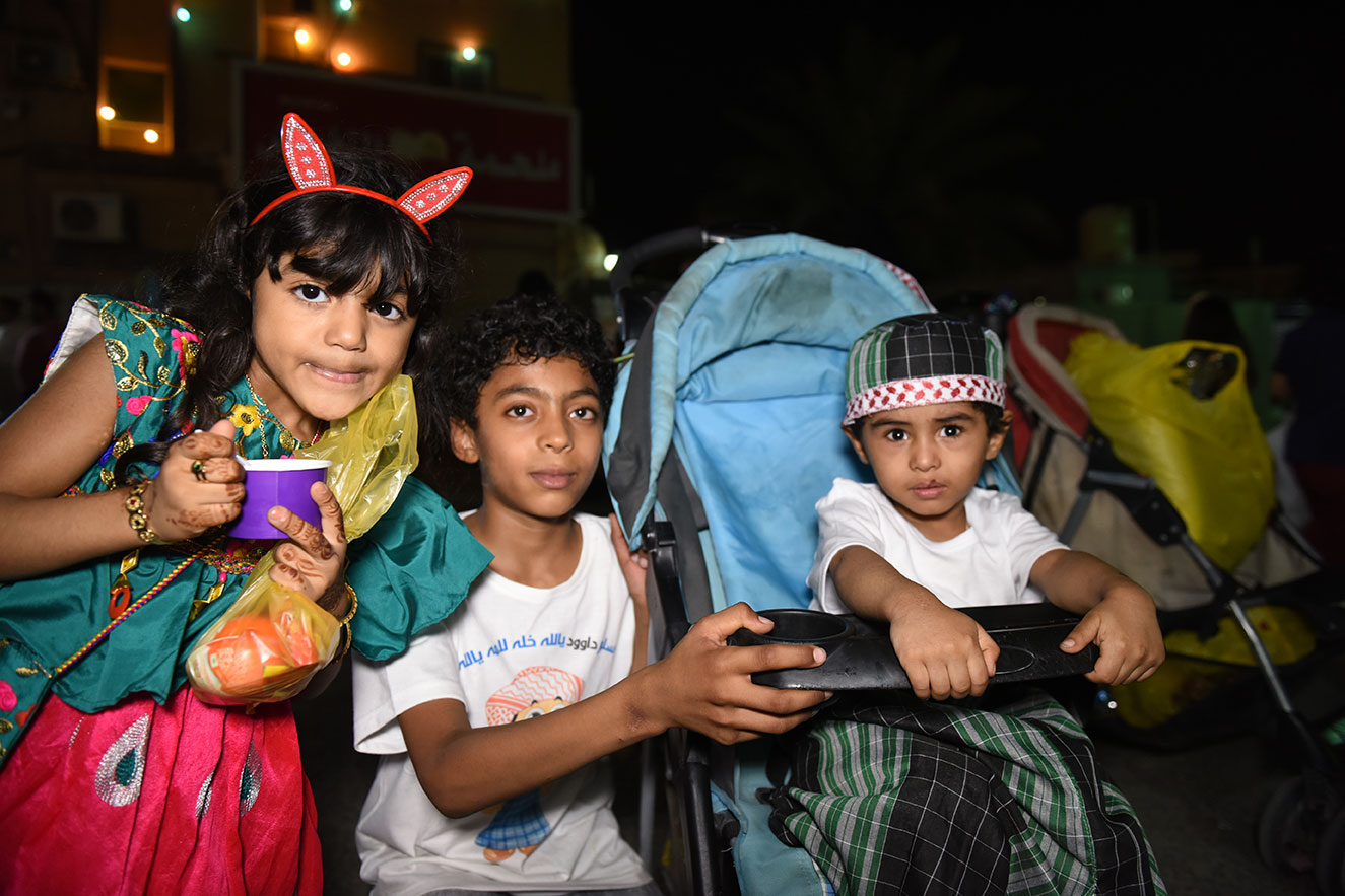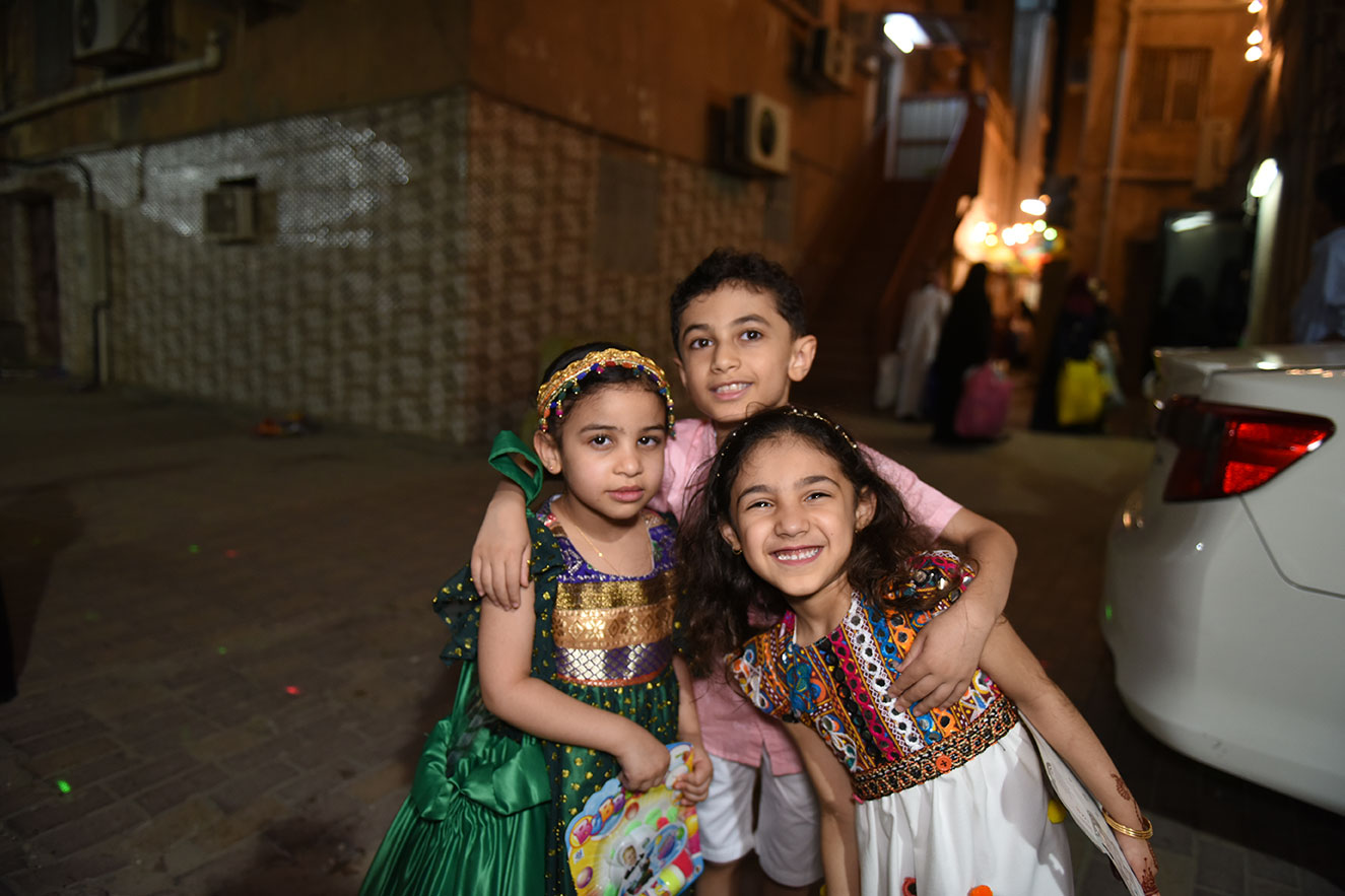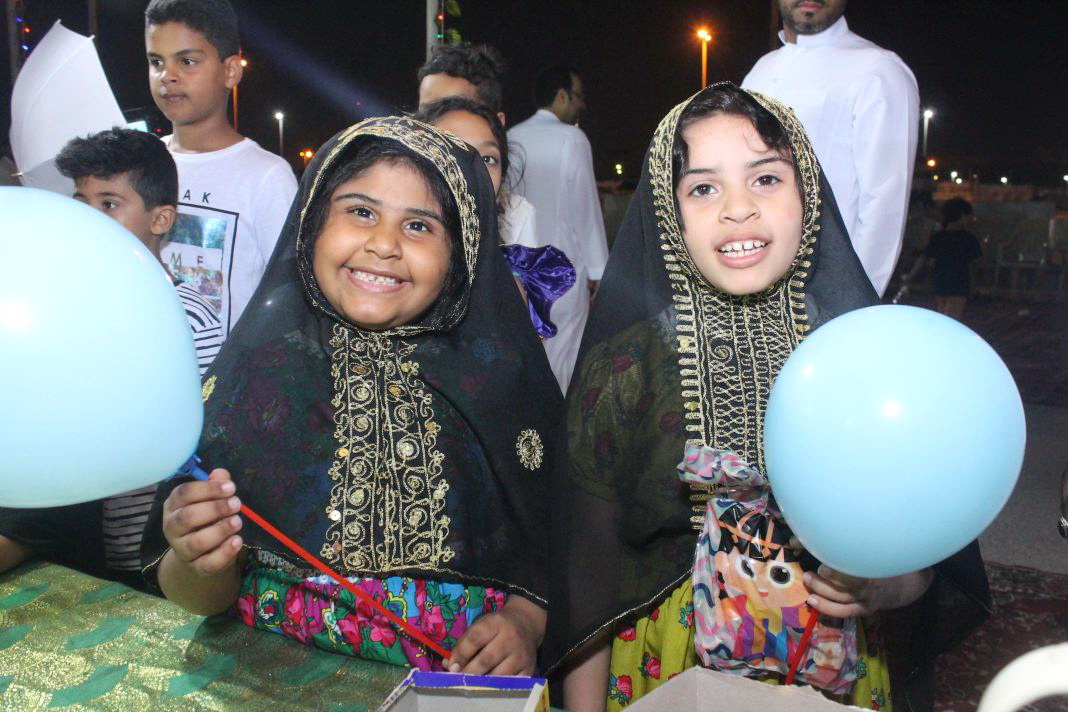 وخرج الآلاف الأطفال فارتدى بعض الأولاد الملابس التراثية كالزي الخليجي، في الوقت الذي لبست فيه البنات والفتيات الجلابيات والبخانق في عرض شعبي للأزياء القديمة، وهم يجوبون الشوارع ويطرقون المنازل.