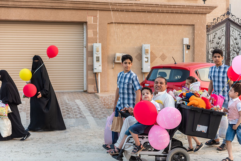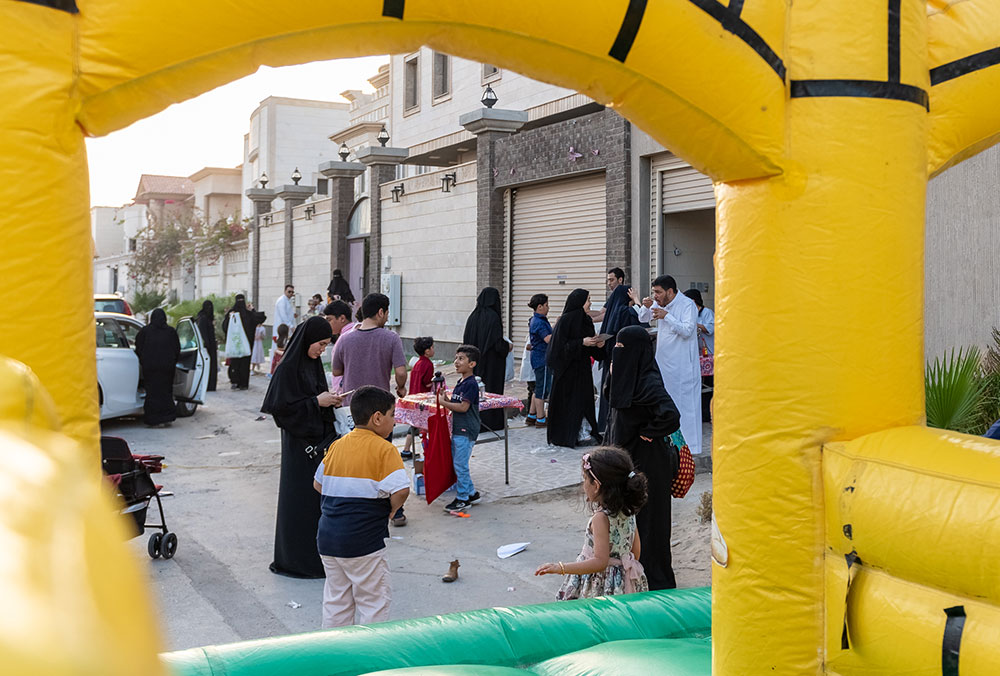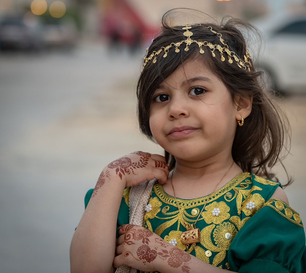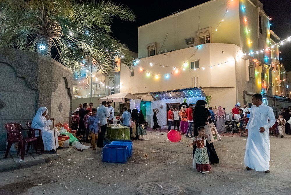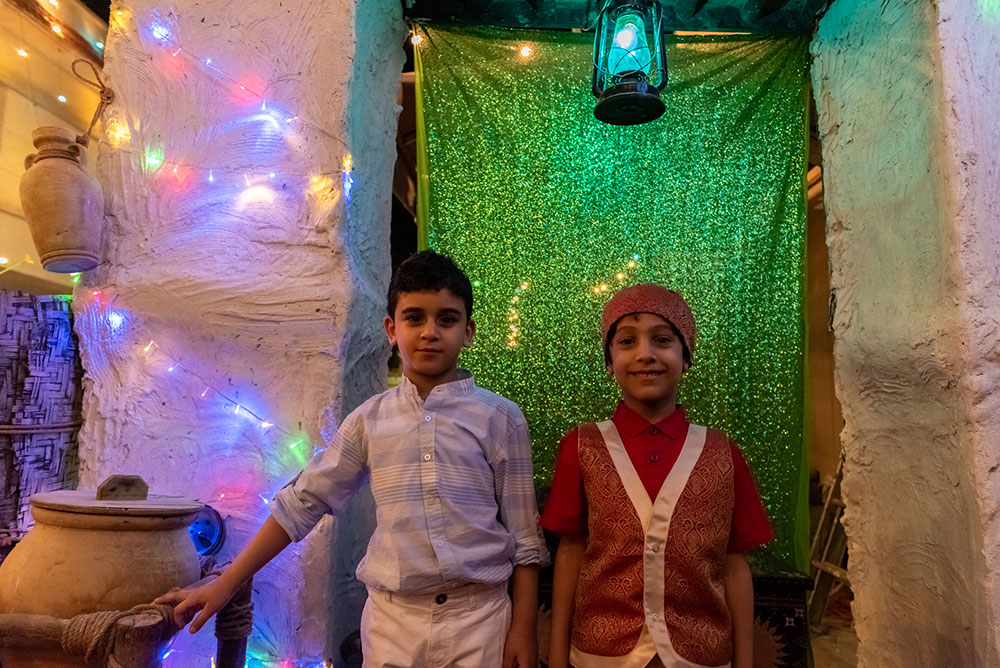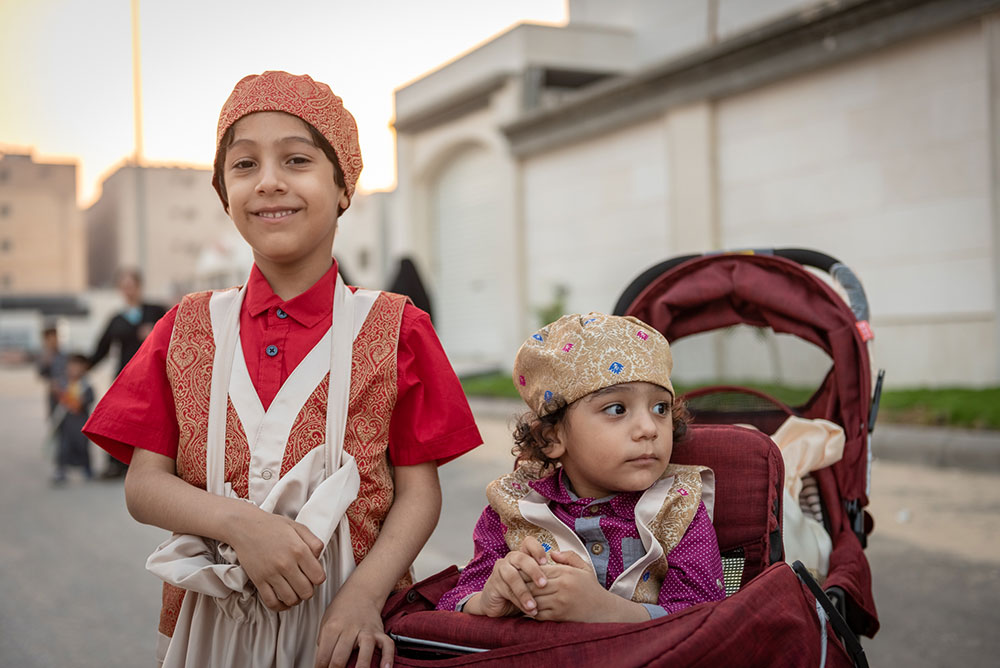 وخرج الآلاف الأطفال فارتدى بعض الأولاد الملابس التراثية كالزي الخليجي، في الوقت الذي لبست فيه البنات والفتيات الجلابيات والبخانق في عرض شعبي للأزياء القديمة، وهم يجوبون الشوارع ويطرقون المنازل.