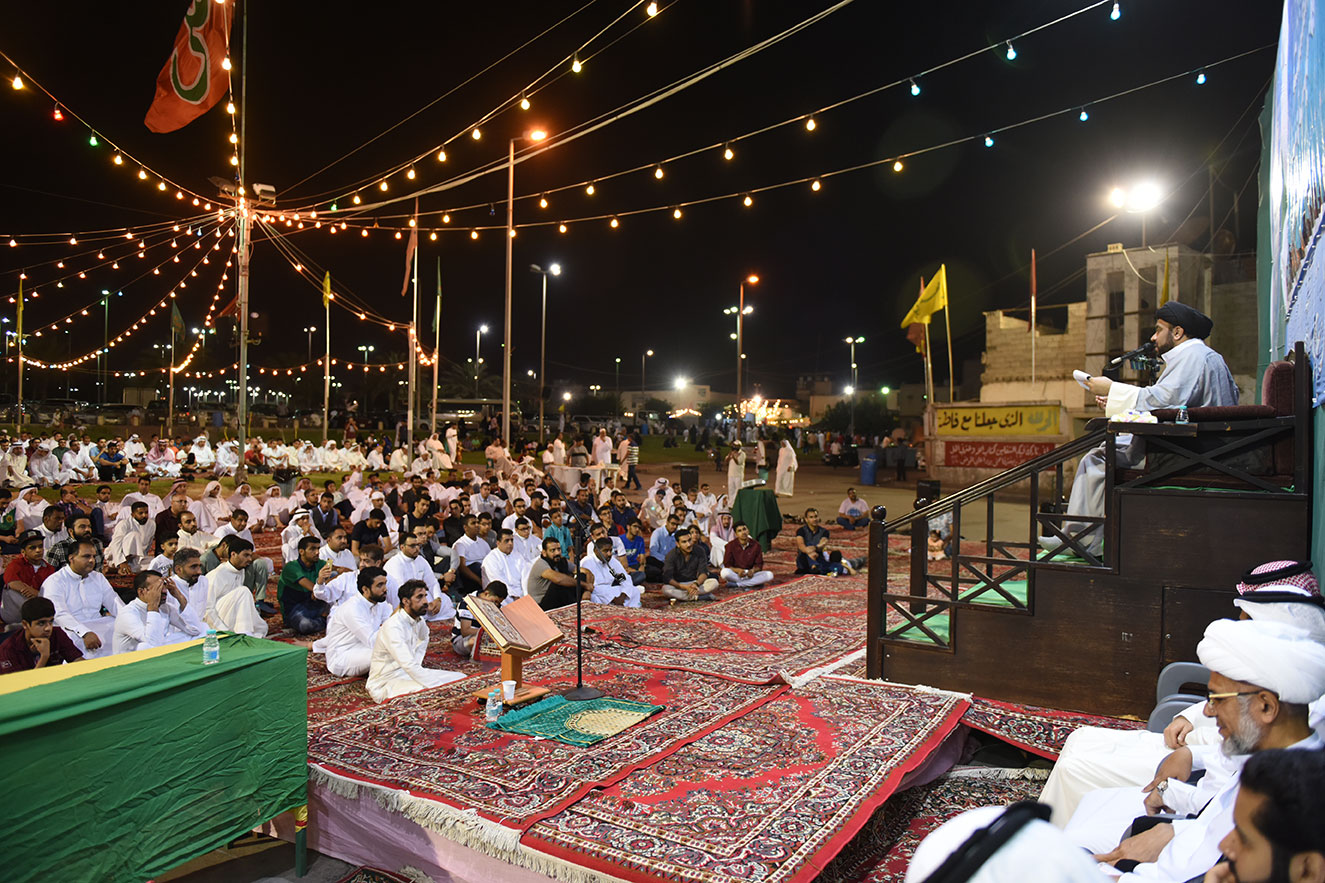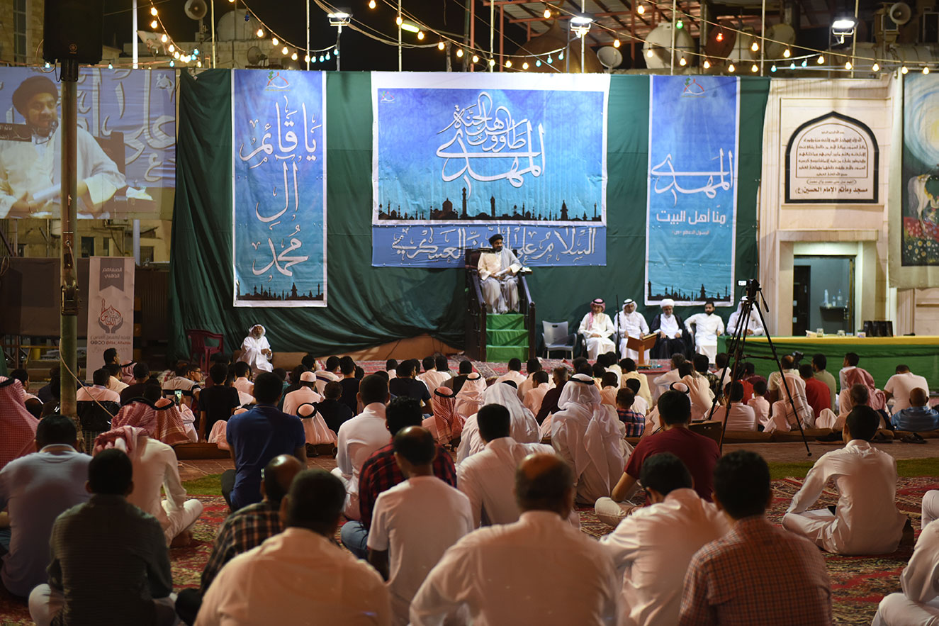 ومنذ ساعات المساء الأولى توجه الآلاف في القطيف إلى المساجد والحسينيات لاحياء البرامج العبادية والاحتفالات الدينية وقراءة المولد الشريف للإمام المهدي .