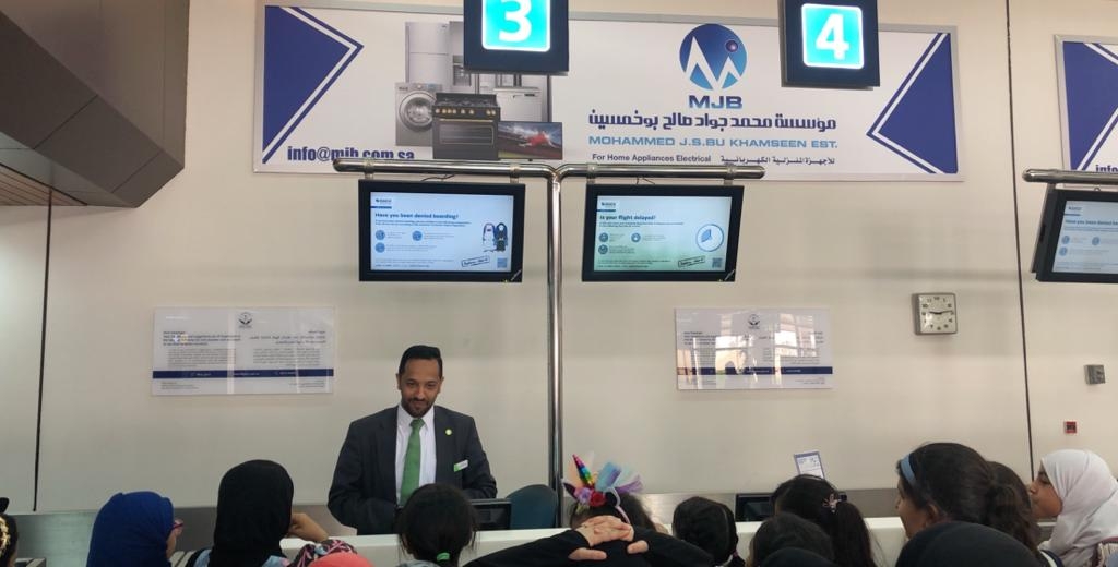 وجاءت ضمن فعاليات البرنامج، رحله علمية إلى مطار الأحساء الدولي بإشراف رئيسة البرنامج منيرة الدرويش وفريق العمل من معلمات الموهبة والإداريات حيث أخذ الوفد جوله بالمطار مع باسم الحبيل حيث تم التعامل مع الطالبات كمسافرات على طيران أرامكو.