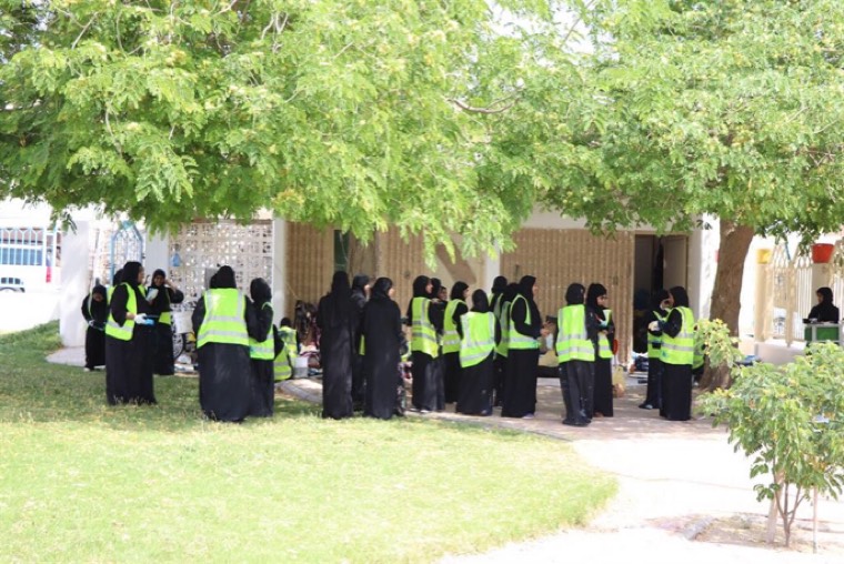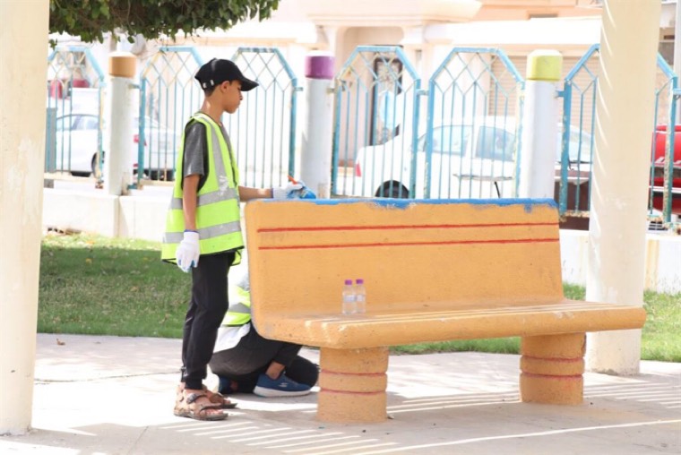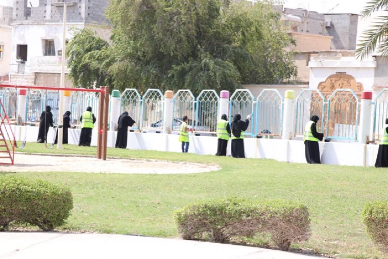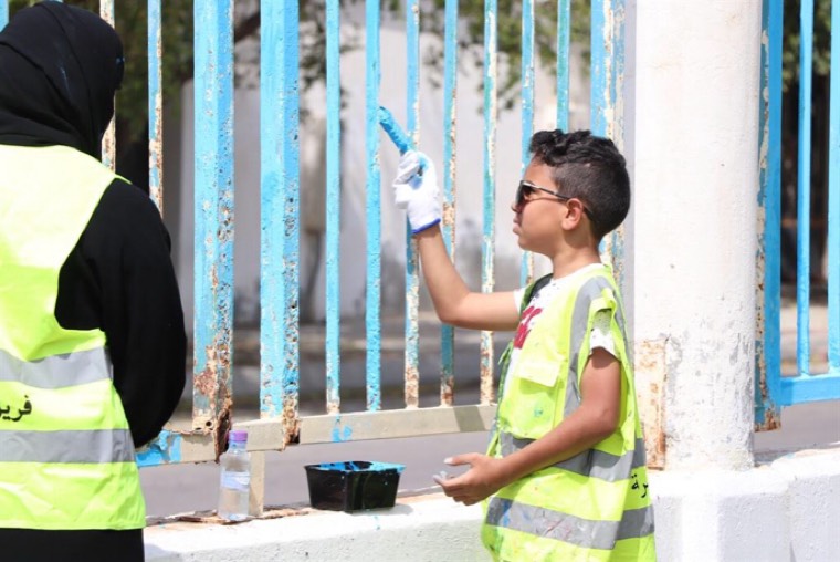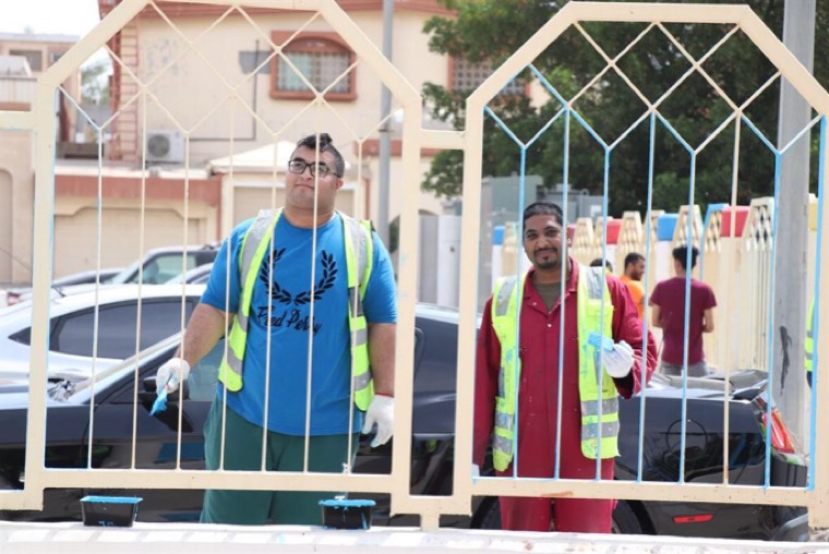 وانقسم أفراد الفريق التطوعي إلى قسمين الأول تولى دهن الأسوار فيما يبدأ القسم الآخر بأعمال آخرى كالرسم و التلوين.