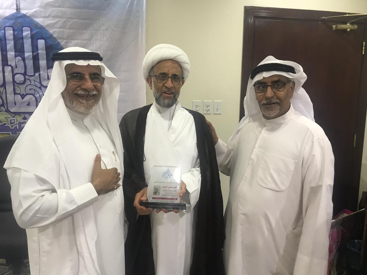 وفي نهاية الندوة قدم الحاج حسن العطافي درعا تذكاريا للشيخ الصفار.
