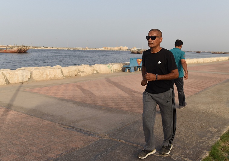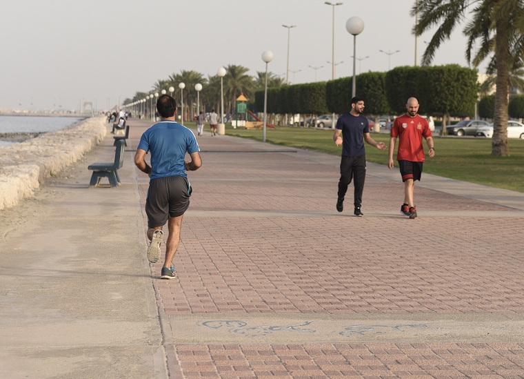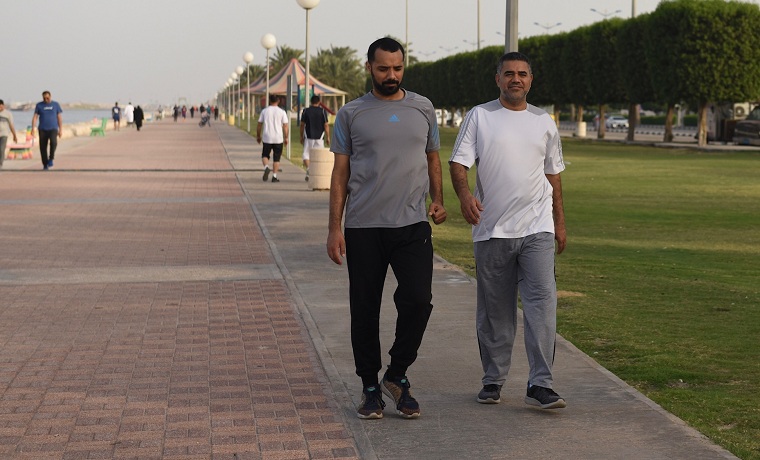 وقال سعيد الجاسم إن رياضة المشي في الكورنيش أفضل من الممارسات في الصالات الرياضة، لاسيما أنها تمتاز بكونها تمارس في الهواء الطلق.