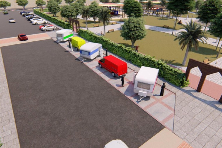 وأضاف المحاسنه الذي يدرس تخصص عمارة في السنة الرابعة في - جامعة الامام عبدالرحمن بن فيصل، ان التصميم يحتوي كذلك على مواقف للسيارات بشكل مناسب وإعادة توزيع مطبات عبور المشاه وإعادة تصميم دورات المياه وتهيئة منطقة مخصصة لعربات الطعام.
