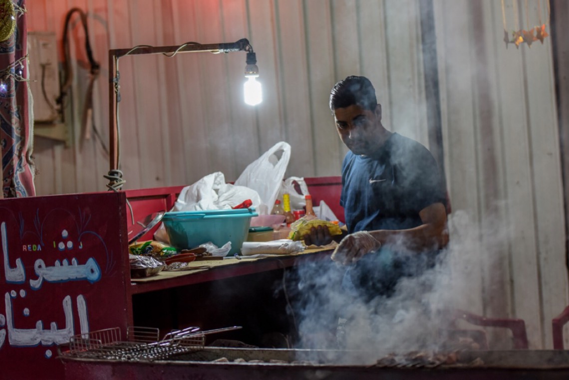 وأوضح علي العقيلي، أنه يعمل في مهنة شواء اللحم منذ 5 اعوام، لافتا إلى أن العمل الحقيقي يبدأ في العاشرة مساء، حتى وقت السحور.