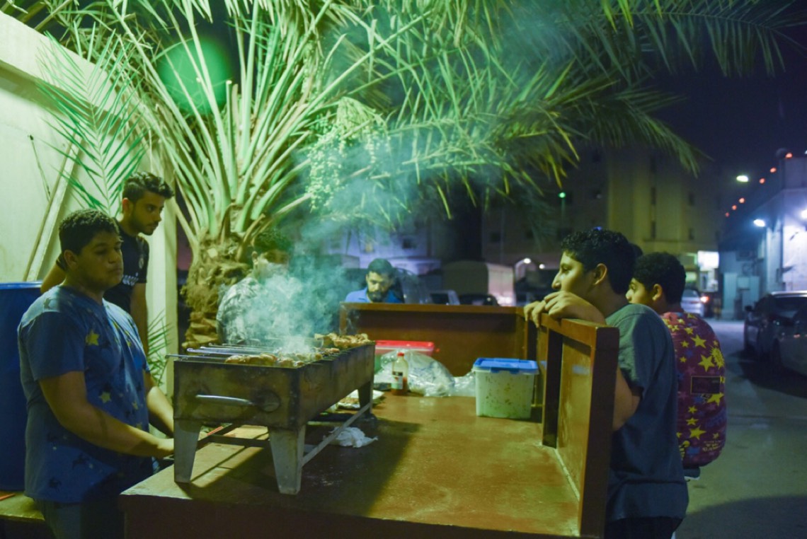 بالصور.. أحياء القطيف تتحول إلى حفلات شواء مفتوحة في رمضان